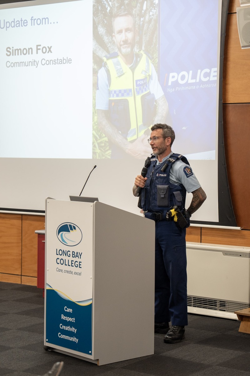 - Simon Fox (Community Constable) who provided stats indicating Long Bay has low crime rates, dropping year on year, making Long Bay a safe community. Reiteration that reporting any incidents is key to getting an accurate picture and necessary response.